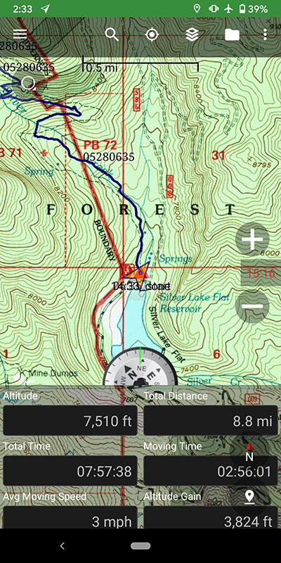 The first 2 miles of this route follows the typical trail up from Silver Lake Flat to Silver Lake. Easy.